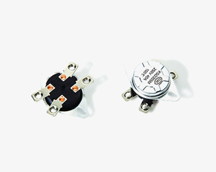 KSD305温控器是由双金属片感温突跳单刀单掷型温度控制器。该控制器由绝缘外壳、金属盖、双金属片、触桥、弹簧、动作杆,构成的单极型的常闭开关。当温度变化升高达到双金属片预设变形温度时,双金属片动作通过动作杆使触桥与触点分离,使得原来呈常闭状态的开关断开。其断开温度可根据客户之需求而制作,动作后需手动复位使其闭合。